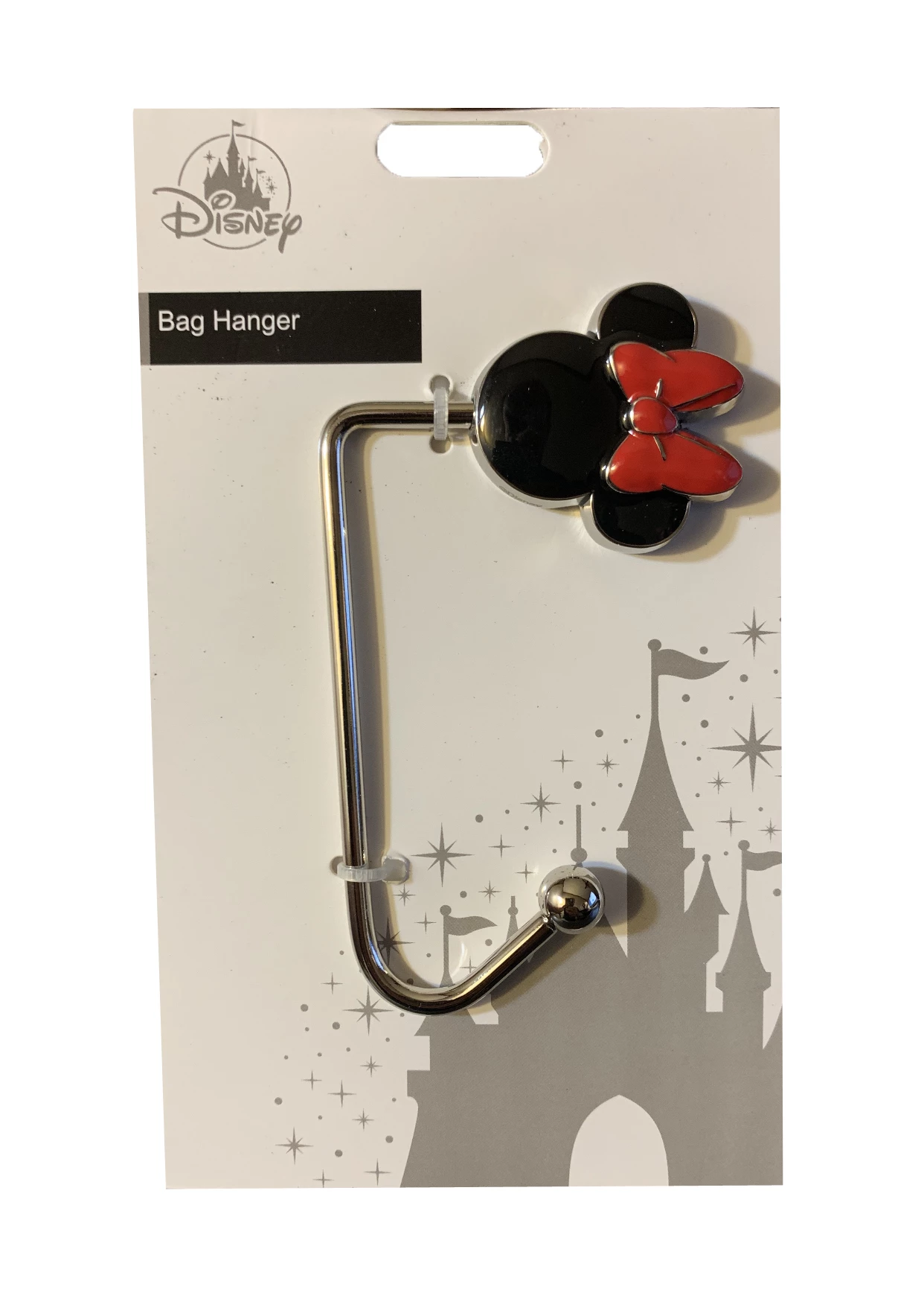 This Minnie Mouse Icon Hanger hooks on a table so you no longer have your purse on the floor or on the table in the way. And what would be better then Minnie to give you a helping hand?