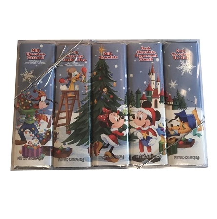 Delicious Holiday Candy Bars with Holiday wrappers full of Mickey Mouse and