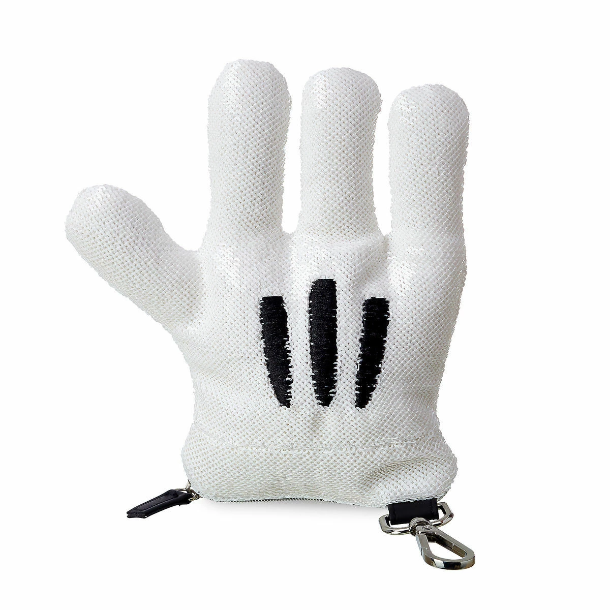 Mickey is happy to lend you a hand with your essentials. Fashioned after his iconic white glove, this padded pouch is covered in shimmering sequins. Featuring a zip closure, it includes a useful clasp so you can clip it to a bag or belt loop.