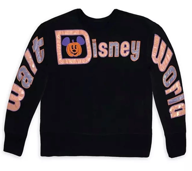 Jack-o’-lantern Mickey Mouse illuminates the neighborhood with smiles for this glittering Halloween pullover top, a spirited souvenir of Walt Disney World Resort.