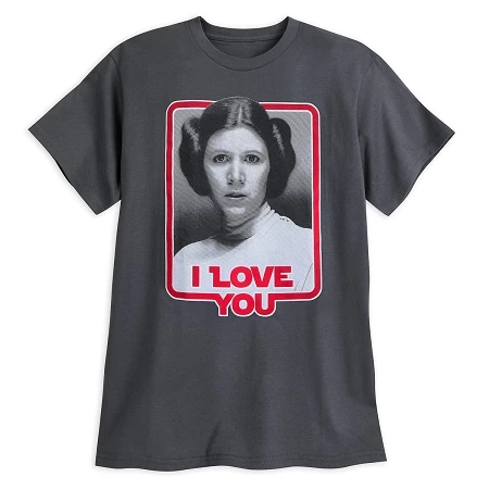 soft cotton Princess Leia tee next to his counterpart ”I Know” Han