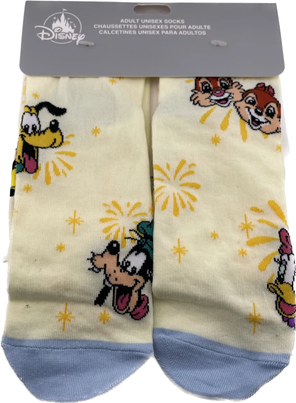 This sweet socks features Mickey Mouse and his Friends on yellow with a ruffle trim.