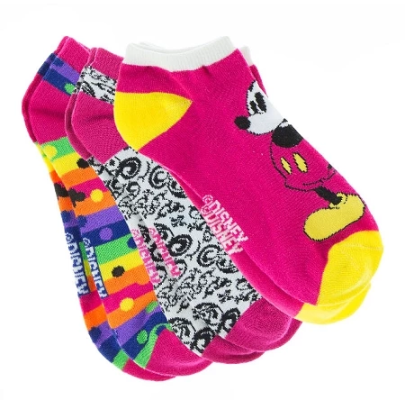 Bring some fun to your outfit with these soft and stretchy Mickey Mouse socks. Each colorful pair features a low-cut cuff. Features a Mickey Mouse profile, Colorful dots and Icons, and a filigree pair.