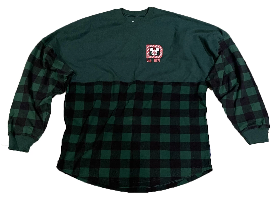 Show your holiday spirit in this festive plaid green spirit jersey with glittering puffy Walt Disney World Resort logo.