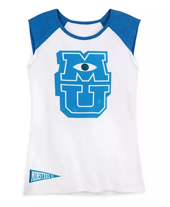 Scream-out with school spirit in this sheer tank top sporting the collegiate insignia of Monsters University. This flared ”MU” design with contrast trims is sure to scare-up compliments from sorority sisters and frat bros alike.